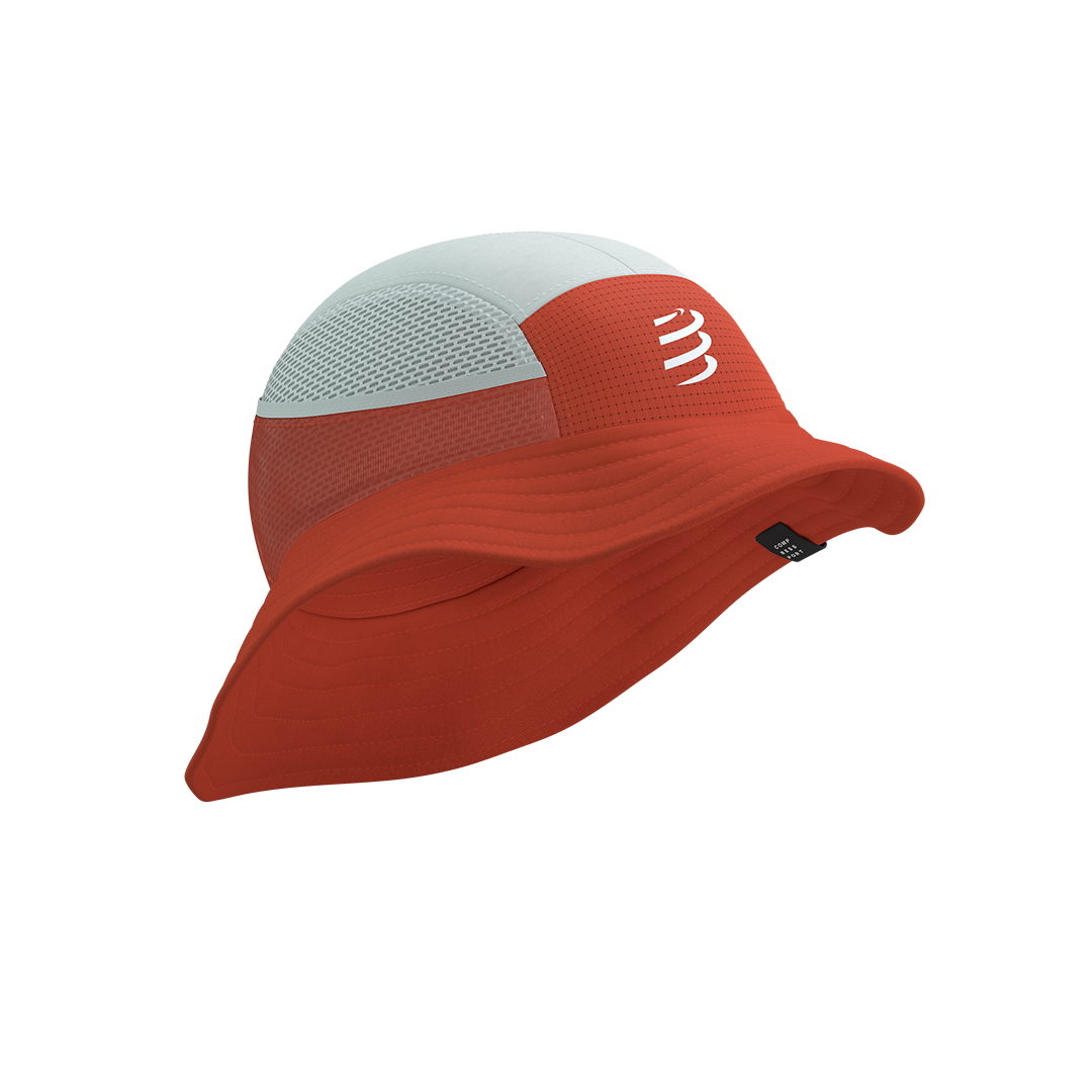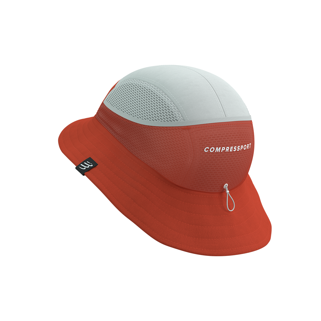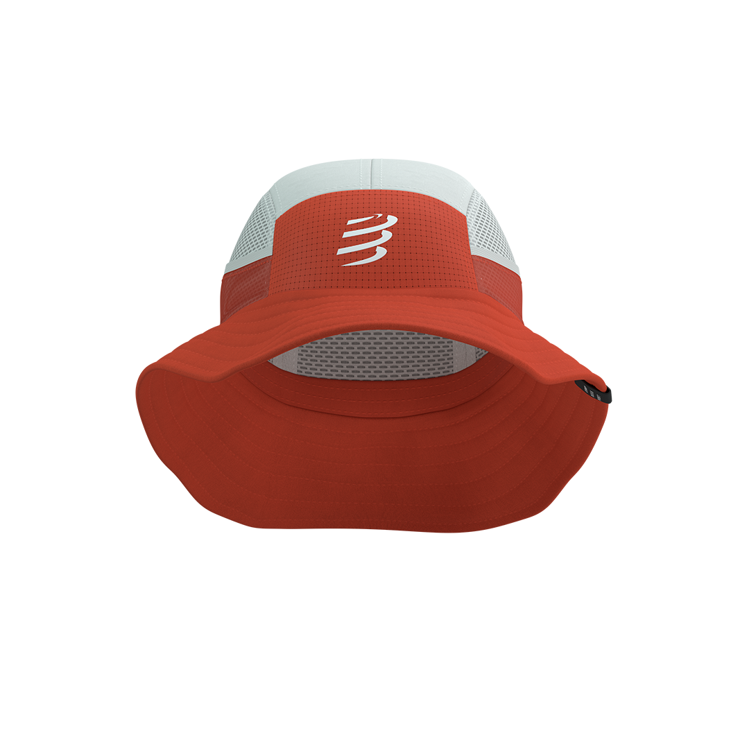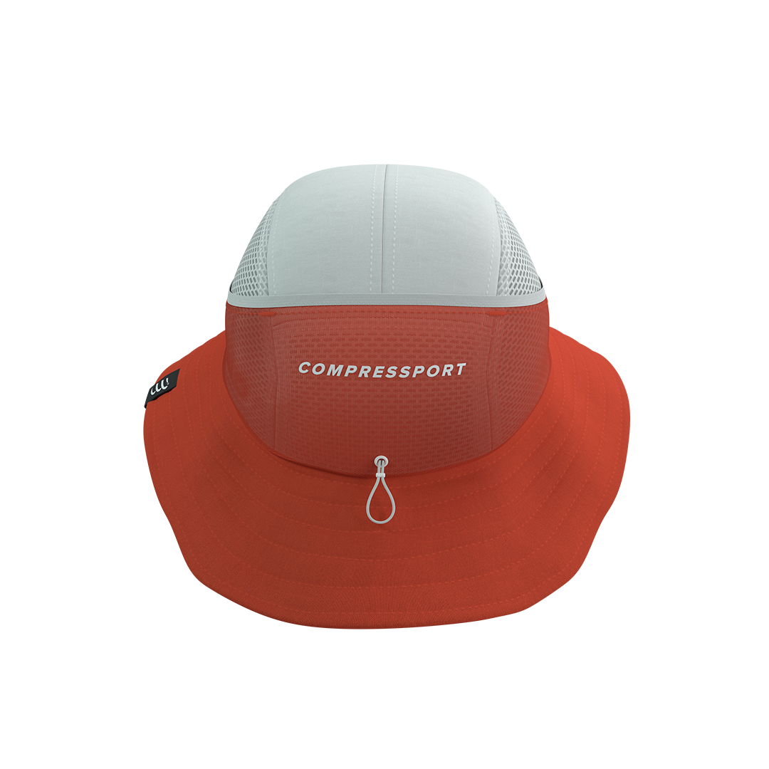 Un gorro de competencia blanco que te ofrece protección solar con bolsillo trasero para hielo integrado, ideal para competir fresco en las condiciones más cálidas.